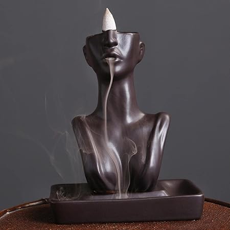 YYW Statue Backflow Incense Holder Incense Burner Waterfall Aromatherapy Ornament Home Decor with Incense Cones and Incense Stick (Black)